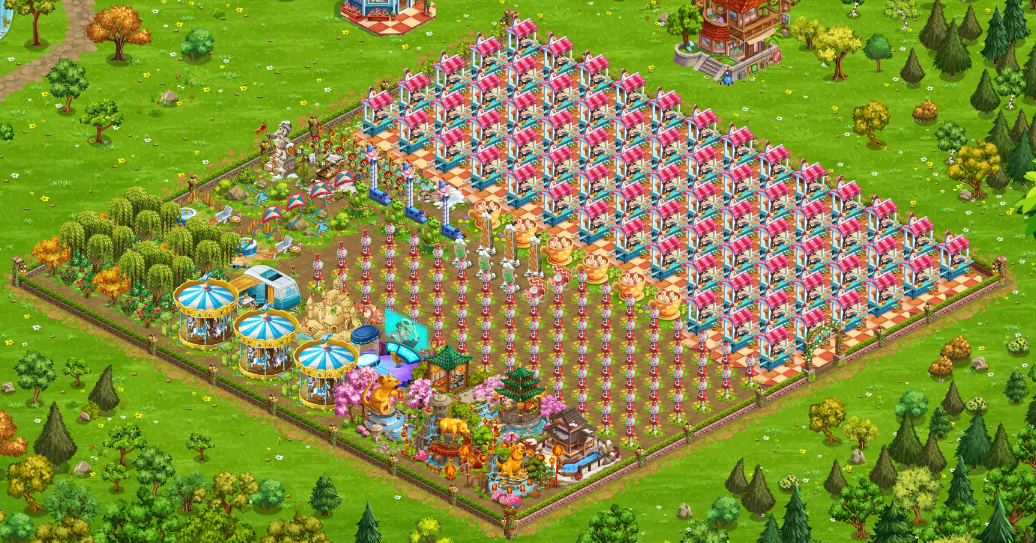 Cotton candy machine (4x4): This comes from the candy voucher trader. This is quite a good 4x4 decoration for quality 3 decorations. You can upgrade it up to 60 happiness points and thanks to its 10 village happiness, it gives two extra points of happiness compared to four gumball machines. However, it is not always as useful because you often need a large number of gumball machines for the task number. It can still be a good choice in some situations though.
