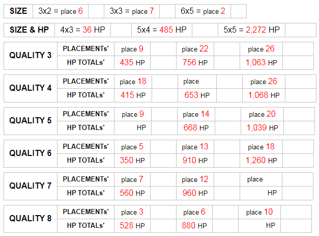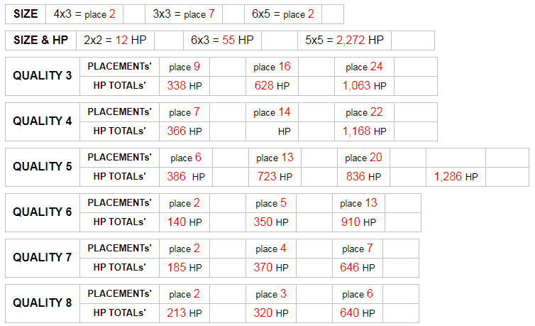 For other sizes, you can try to contact other players to see if they will know any information about this or you can try to get good estimates from the information above.