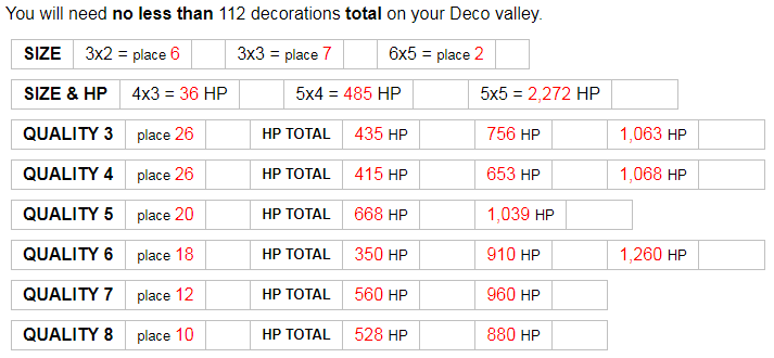 and there are stalls that ask for less placed decos too; just like there are 2 or 3 steps for HP, there are for # placed as well (for eg; level 3 decos can ask for qty 9, qty 22, or qty 26)