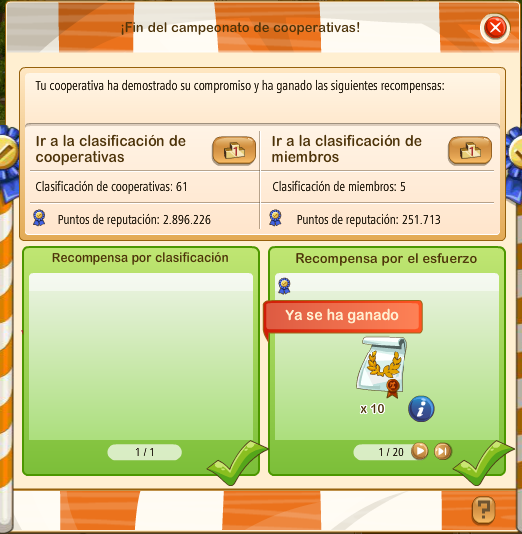 Evidentemente solo una coope picó el anzuelo, las demás se quedaron con los puntos que ya habían conseguido, en efecto, el servidor his, no le presta mucha atención al desafío desde hace mucho, las cooperativas no lo juegan porque están decepcionados.