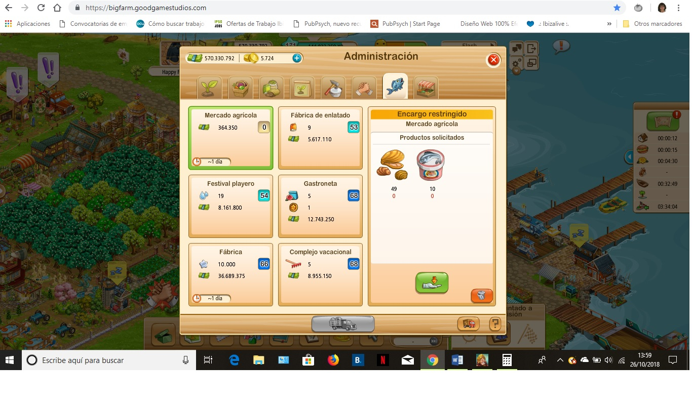 Sin embargo desde hace 6 meses, me quejo de que mis pedidos son todos 0 -cero- y puede que solo 1 de valor 45/46 si hay suerte. Esto ocurre tanto en el mercado ecológico como en el mercado pesquero. Como comprenderán ganar tan ínfimas cantidades de Farm$ para sustentar las granjas es inviable. Si tengo o no tengo uno o varios bugs, a estas alturas, debería estar solucionado. Considero que el cumplimiento de las normas etc, debe ir en ambos sentidos. Mis ganancias no son las mismas que las de otros jugadores como bien se puede ver en vuestras granjas. El error que hay en mis mercados no es una pataleta de un jugador, es algo tan evidente como que ahora es domingo 28 de octubre 2018, y que llevo ya mucho tiempo perdiendo dinero.