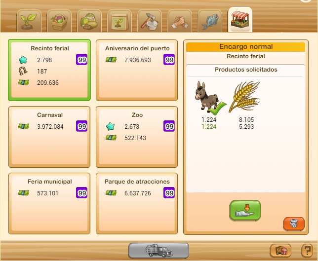 Lo curioso es que las cantidades solicitadas han sido "abundantes" pero las recompensas en Farm$ muy muy escasas. Ni herraduras, ni otros items atractivos, solo puntos de experiencia que no necesito para nada. Por mi parte, nunca he dejado de completar pedidos incluso con valor 0, algunos los he rechazado, pero en general he utilizado el mercado ecológico con mucha frecuencia. Ahora también el mercado del pescado, ha comenzado a tener pedidos de valor 0. Las cantidades más solicitadas son para los pedidos de pescado con menor pesca.