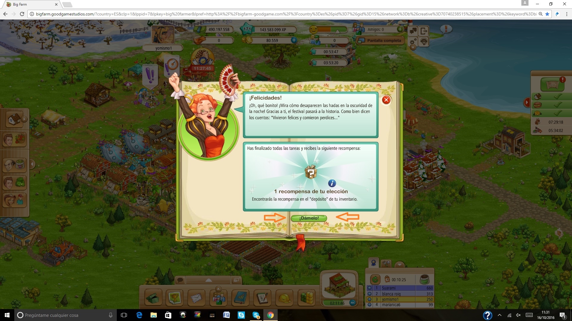 A continuación, tendréis la opción de elegir la recompensa.