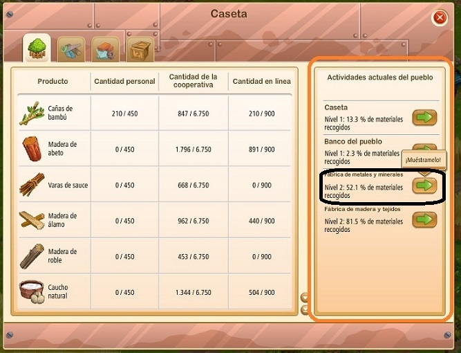 Y finalmente, si entregas todo el material que se te pide, , podrás mejorar tu fábrica. Las mejoras te darán XP para tu cooperativa y podrás pasar al siguiente nivel del pueblo