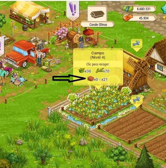 En la imagen contigua se puede observar que en la Arcilla figura como producción x0 - x21, esto es debido a que la producción es aleatoria entre 0 y 21 unidades, pinchamos y recogemos la cosecha.