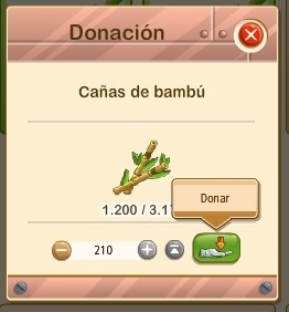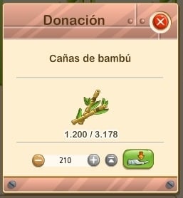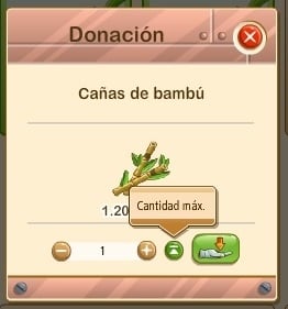 Podeis observar que la pantalla del juego para donar el producto funciona de forma semejante a otras muchas, pinchamos en el máximo y tomará nuestra existencia total o la necesaria para completar la petición.