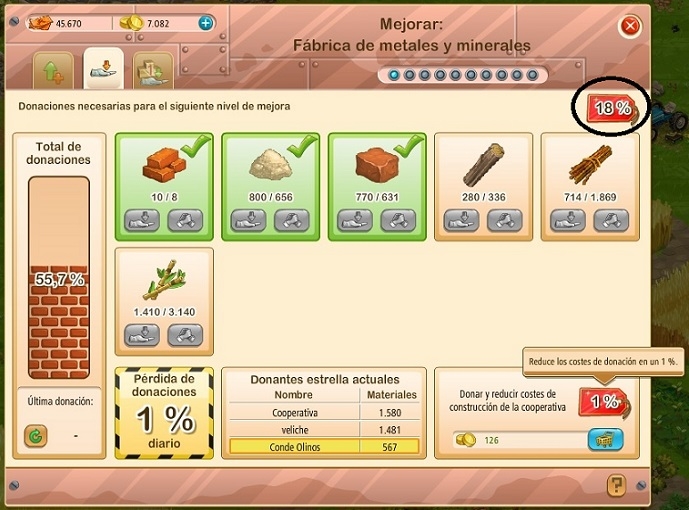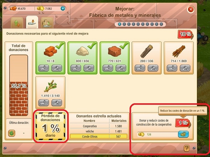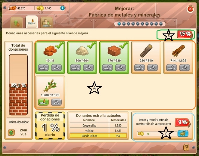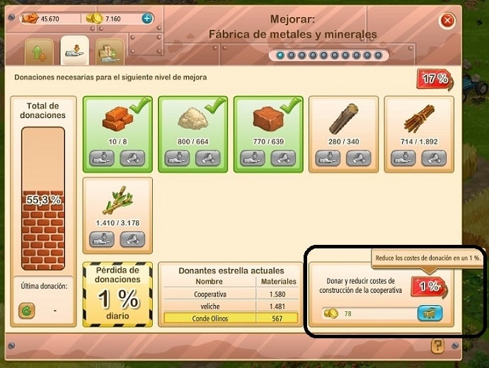 Que esta la opción de "Donar y reducir costes de construcción de la cooperativa" y se paga con oros (ya sabemos negocio) pero no es indispensable que se tengan que pagar ya que se puede ir haciendo entre todos y donar la cantidad total de elementos para poder activar la mejora.