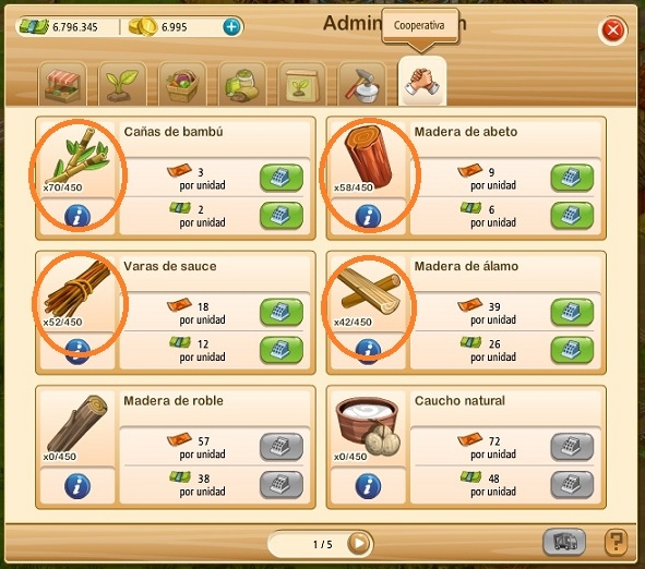 Estos materiales podemos venderlos y si lo hacemos desde el Menú del Pueblo tenemos la posibilidad de ingresar dólares del pueblo por su venta.Buscaremos el icono de Administración en el Menú inferior del Pueblo, y cuando lo despeguemos veremos un nuevo icono con el símbolo de la Cooperativa situado en el extremo derecho.