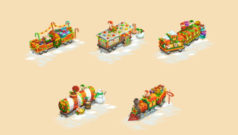 Os esperan unos premios exclusivos que van desde pequeñas recompensas por vuestra actividad, las decoraciones para cada capítulo terminado, hasta una nueva y fabulosa decoración. Esta decoración representa el progreso de tu cooperativa durante el evento. Tendrá más valor cada vez, a medida que avancéis en cada paso. ¡Todas las 5 decoraciones se pueden combinar en un tren navideño único y asombroso!