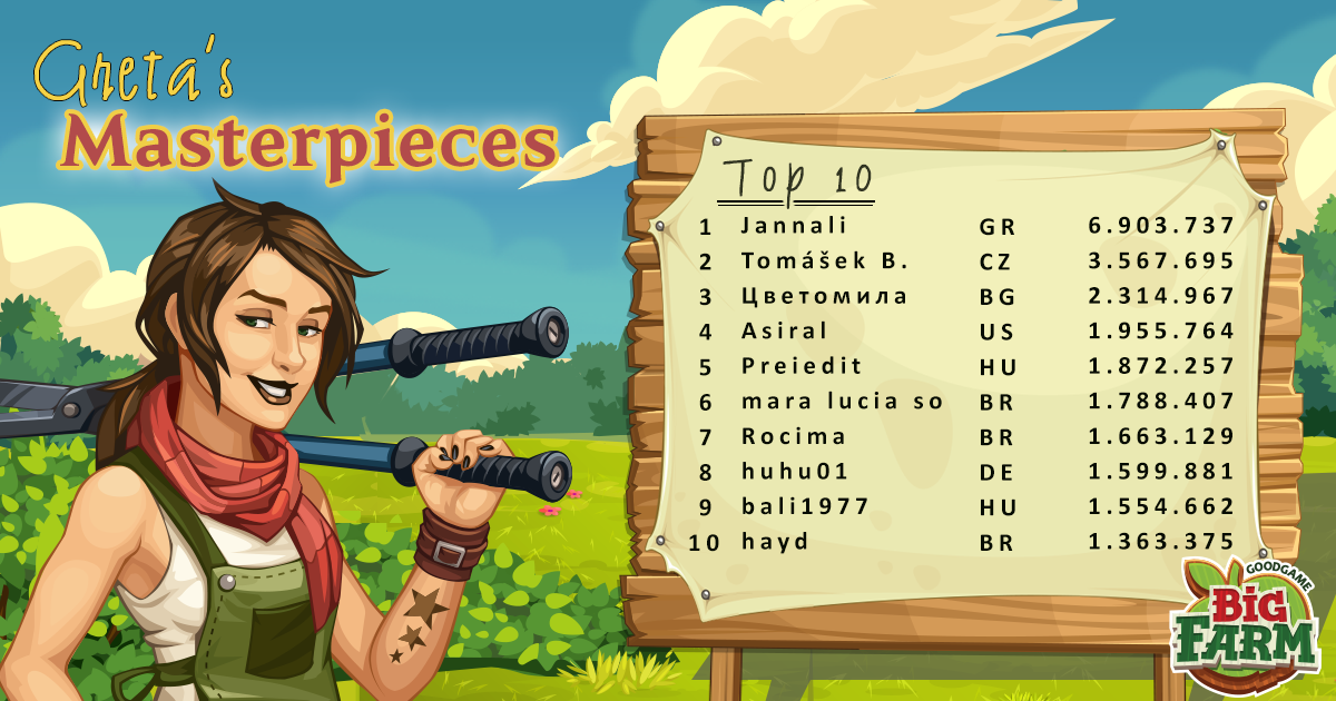 Y tengo el placer de comunicar que en el top 10 de las obras maestras de Greta, tenemos a un jugador de nuestro servidor: ¡felicitaciones @chiky3!