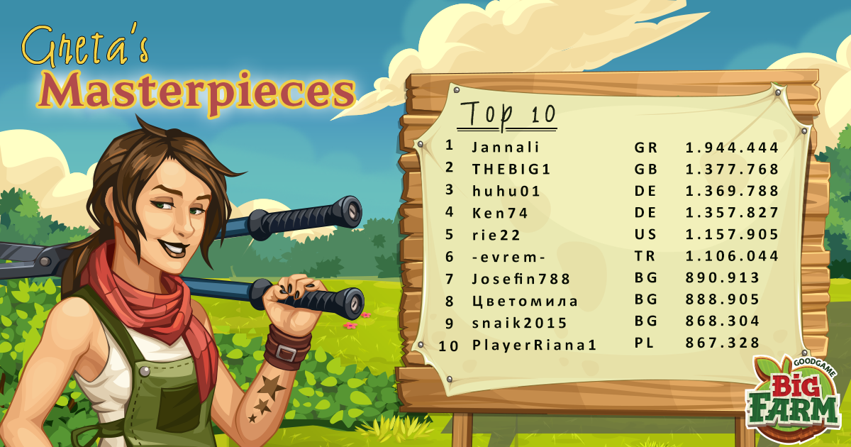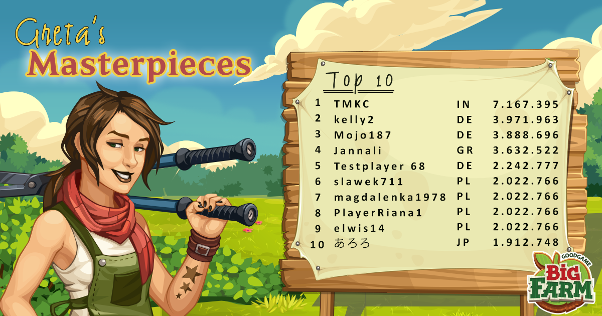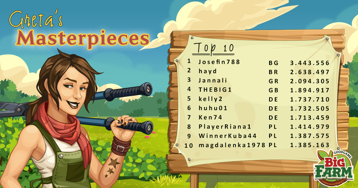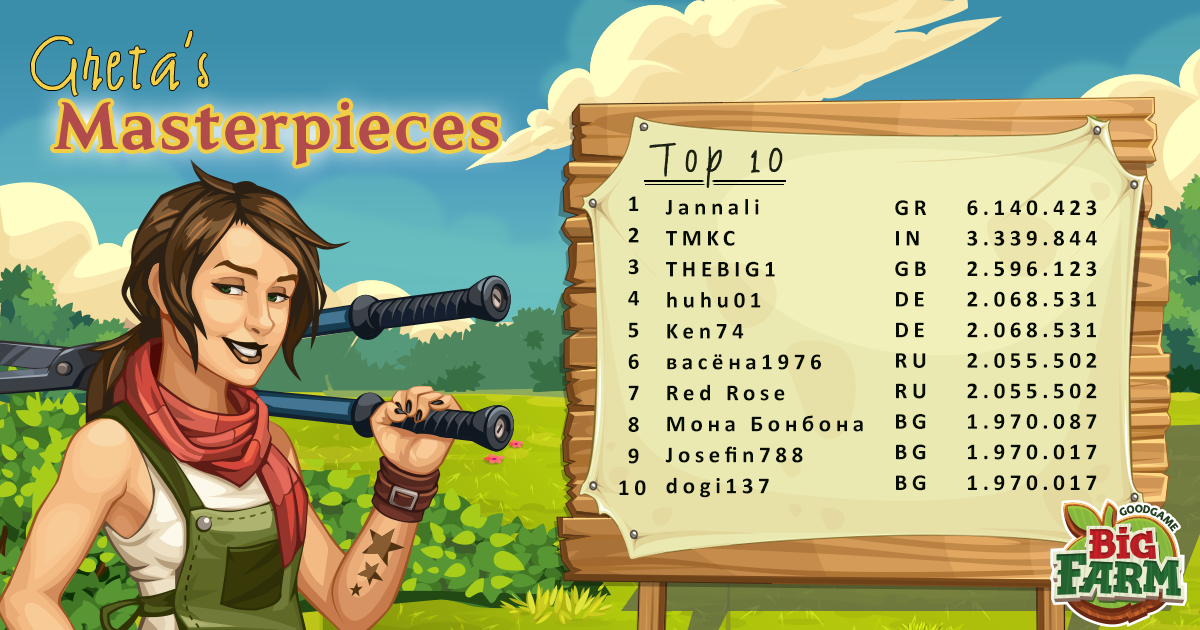 Se han enviado ahora mismo las monedas del campeonato obtenidas en el campeonato mundial de Big Farm y estos son los resultados conseguidos por cada servidor y los resultados de las obras maestras de Greta: