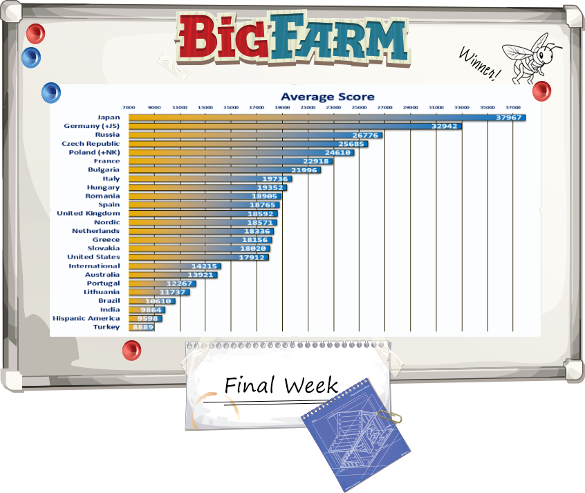estos son los últimos gráficos que nos han proporcionado con la información del campeonato mundial de Big Farm