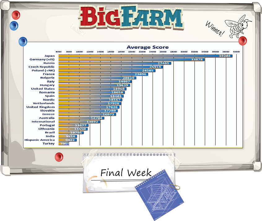 Buenas tardes foreros: Se os han acreditado ahora mismo las monedas del campeonato mundial de Big Farm y estos son los resultados conseguidos por cada servidor: