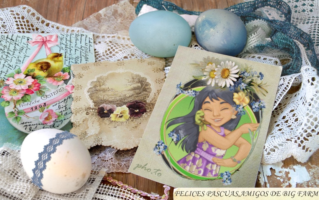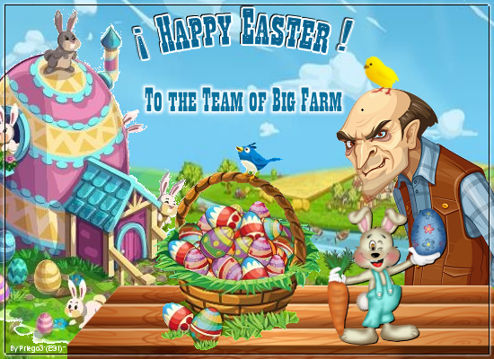 Buenas tardes,[email protected] os dejo unas postales de felicitacion de Pascua,echas por mi.Espero les gusten.Los protagonistas como no personajes de Big Farm.