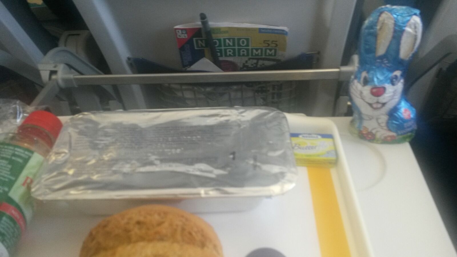 No es una felicitación en si. Hoy he viajado desde Alemania con Lufthansa y han incluido un conejo de Pascua en el menú de abordo. Me han endulzado la comida