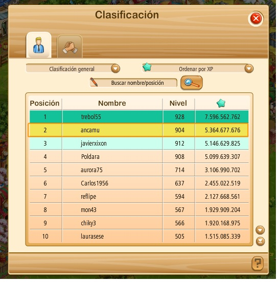 El primero, que arreglen la clasificación de puntos XP sumándonos lo millones de puntos que no se nos han acumulado, que no puede ser que la granja que figura en primer lugar con algunos niveles más que las 3 o 4 que siguen tenga acumulados casi dos mil millones más de puntos, y en mi caso además me quitó niveles, observese que con más puntos que la tercera y cuarta granja la segunda granja figura con menos nivel, y llevamos con el tema varios meses.