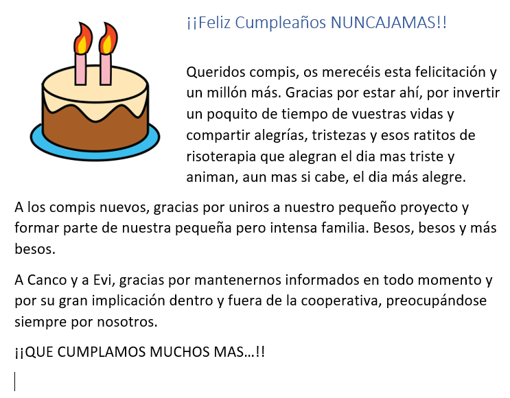El Equipo del Foro, os agradece que compartáis con la Comunidad, esta fecha tan especial para vuestra Cooperativa.