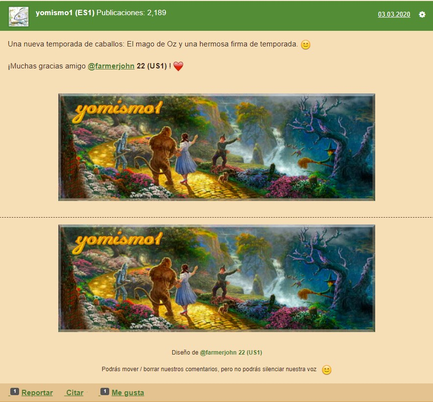 Poco a poco se acaba el frío y la primavera se acerca así que toca cambiar de firma y ponerse otra más acorde con la época del año que pronto empezará y la mejor manera de hacerlo es con otro nuevo diseño hecho por nuestro gran artista @farmerjohn 22 (US1). Fue un gran detalle por tu parte, ¡muchas gracias!