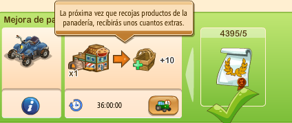 3 la aceleradora : obtienes una cantidad extra cuando la activas y recoges la panaderia , el +10, +15,+25,+50 lo siento estaba convencido de q eran unidades q sacas de mas pero ya no se si es un % de mas