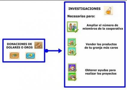 Las de las granjas nos permite sacar más beneficios de las mismas, pero necesitamos hacer las investigaciones de cooperativa para aumentar el número de miembr@s, y el tiempo en los proyectos, ya que van aumentando su dificultad.
