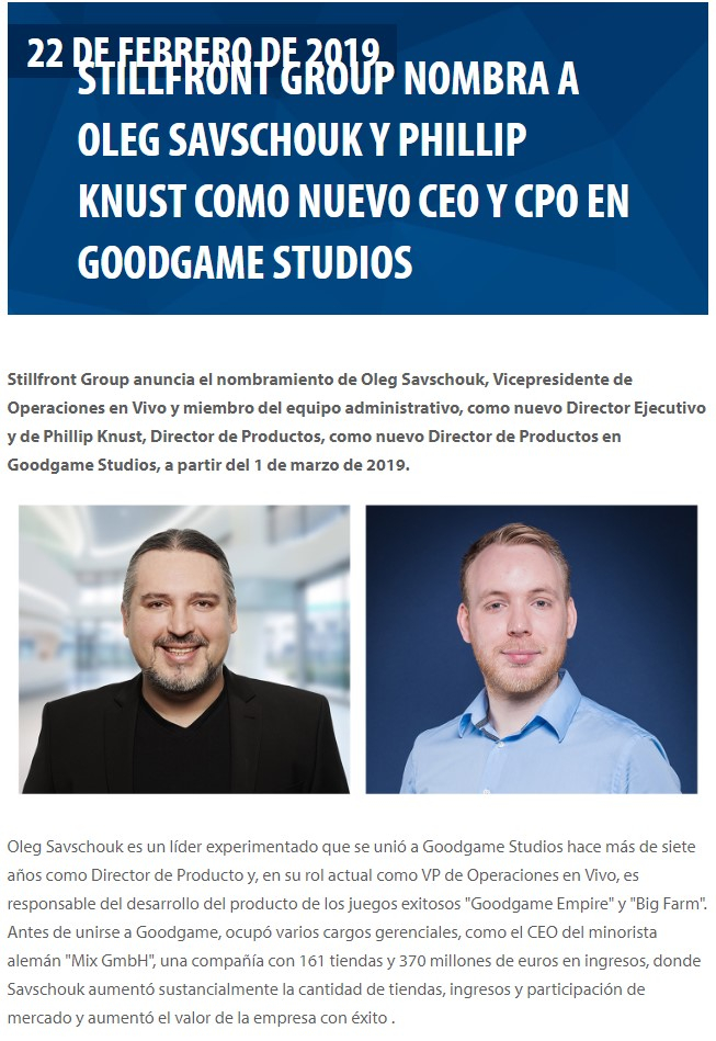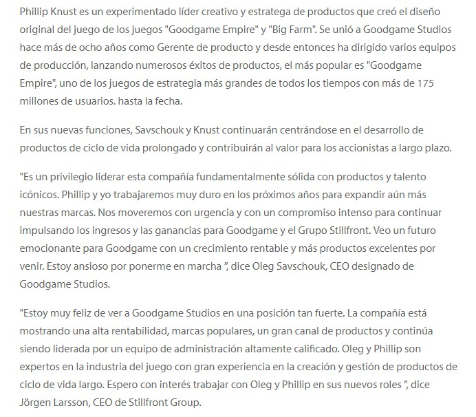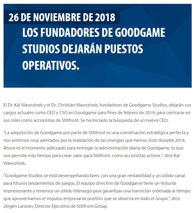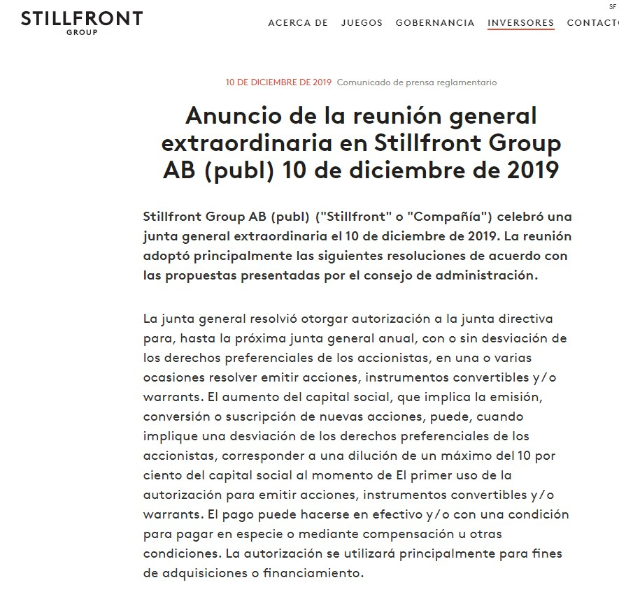 Si tienes tiempo y curiosidad del porque del evento de la "adivina" , visita www.stillfront.com, que es la compañía que adquirió GGS y lee sus últimas finanzas.
