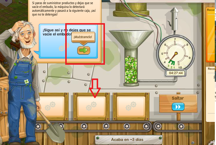La máquina de George se llena con los productos de tu granja. Los que recojas, pasará por un embudo e irá llenando las cajas.