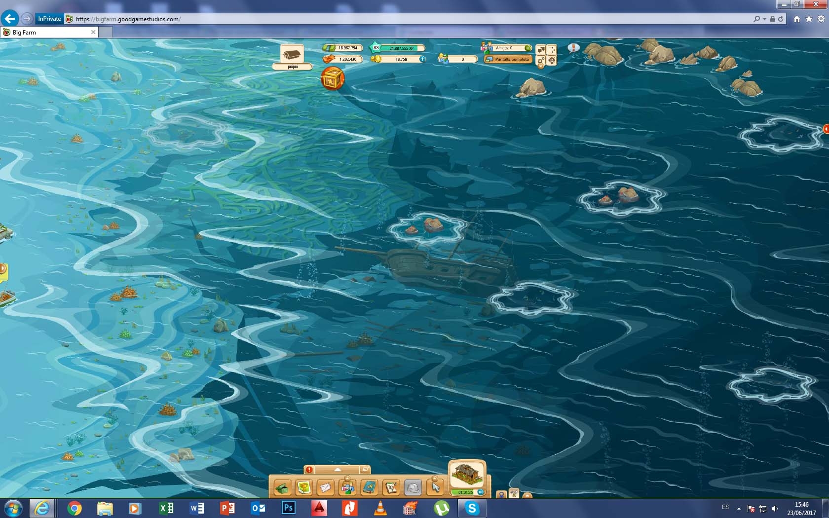 De nuevo el evento del trabajador y me falta una zona de pesca. Además en ninguna de las 5 zonas que tengo activas hay ostras.
