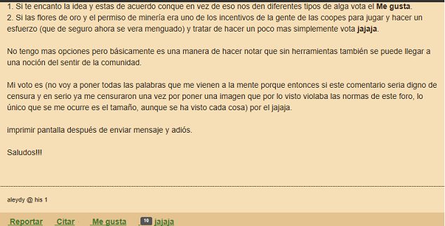 2. Si las flores de oro y el permiso de minería era uno de los incentivos de la gente de las coopes para jugar y hacer un esfuerzo (que de seguro ahora se vera menguado) y tratar de hacer un poco mas simplemente vota jajaja.