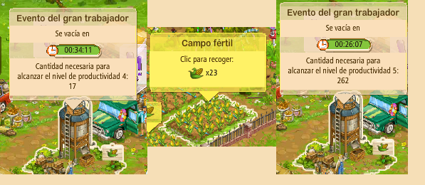 recuerdo que en este evento, al pasar el cursor sobre el silo de George mientras se recolectan los productos, (no al abrir el cuadro completo) aparecía un pequeño recuadro que indicaba las cantidades necesarias para alcanzar el siguiente nivel.