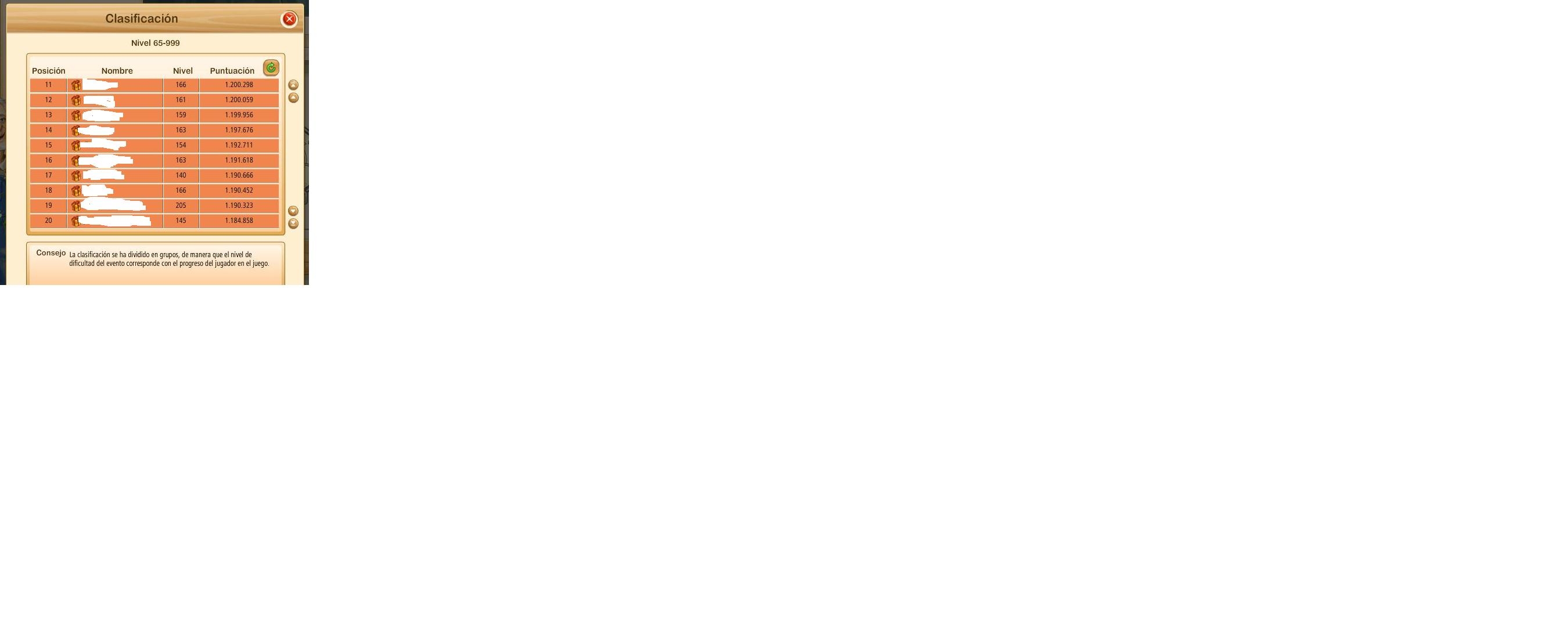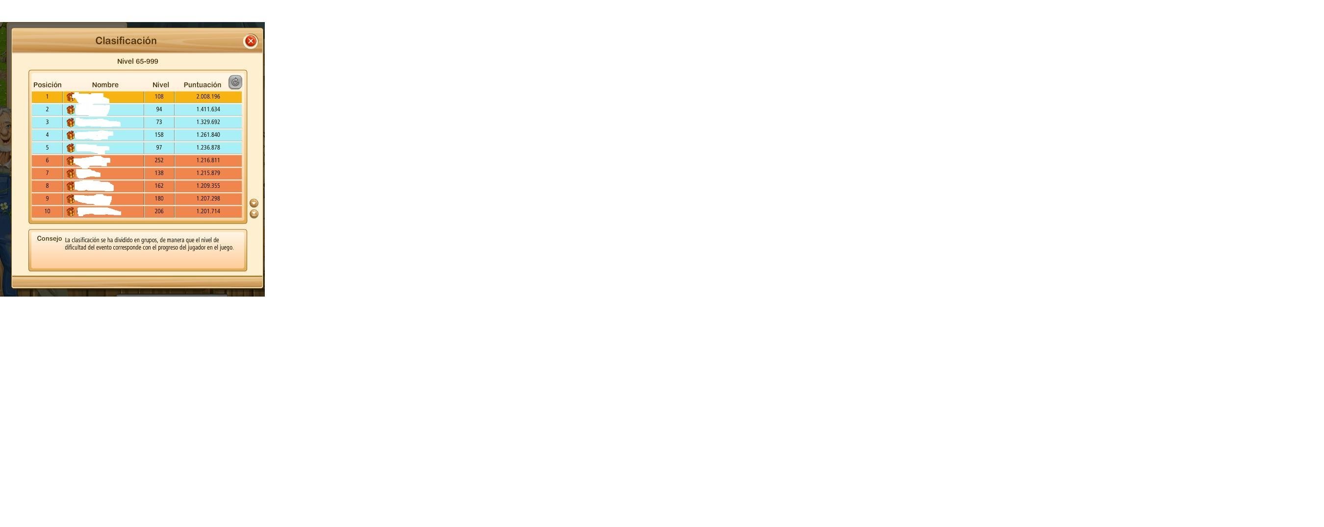 Hace poco pasé de nivel y me encuentro en el evento del trabajador compitiendo desde el nivel 65 hasta el 999. No pueden hacer una categoría intermedia', por ejemplo del 65 al 99 para que no tengamos que competir con los más grandes', no hay manera de lograr una posición acorde con las que venía logrando al estar en un grupo con niveles y granjas parecidas a la mia. Ojalá que tengan en cuenta mi pedido. Saludos