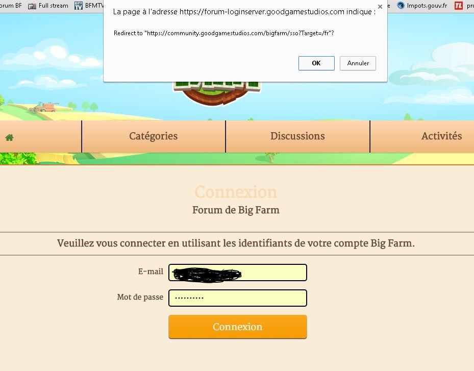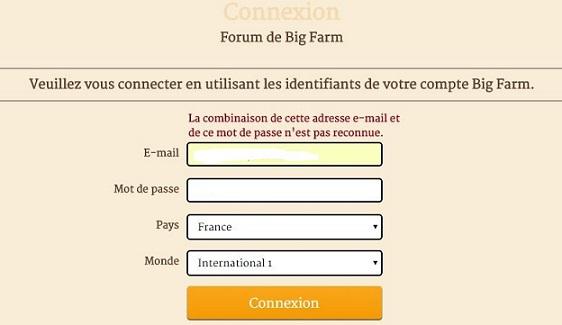 j'ai eu un problème similaire ; par 2 fois, je suis allée sur le forum par le jeu, j'ai rentré adresse mail et mot de passe (ça fait bizarre d'ailleurs d'être identifiée par l'adresse mail et pas par le pseudo), un message me proposait de me rediriger vers une url type "bigfarm.forum.fr", en acceptant je me retrouvais sur la page d'accueil bien identifiée mais dès que j'allais sur une discussion j'étais déconnectée et impossible de me reconnecter, j'avais le même message que ceux de ta coop.