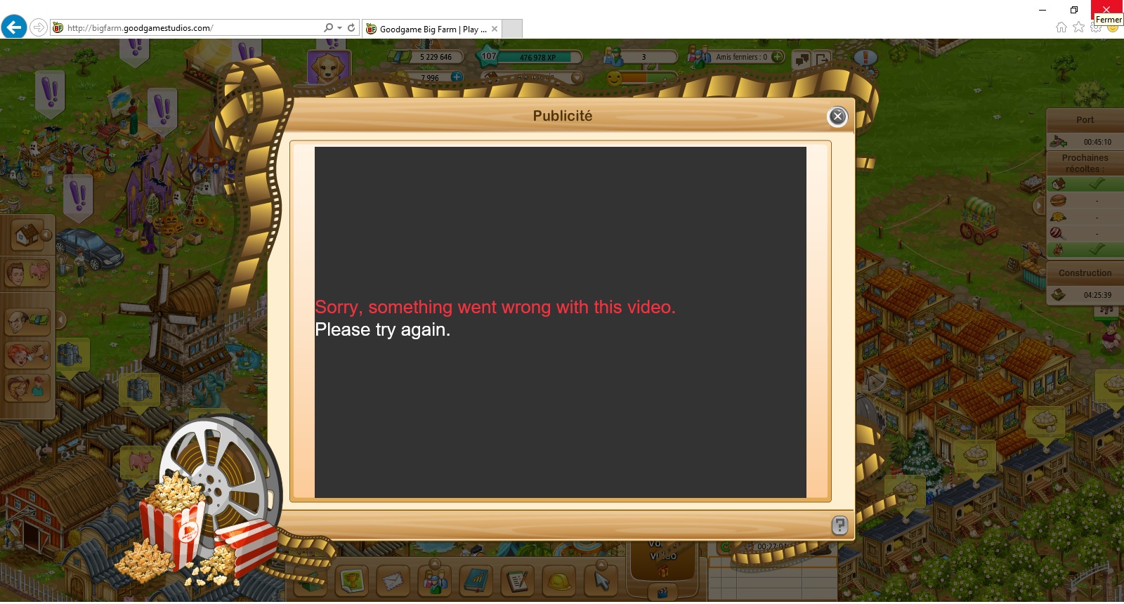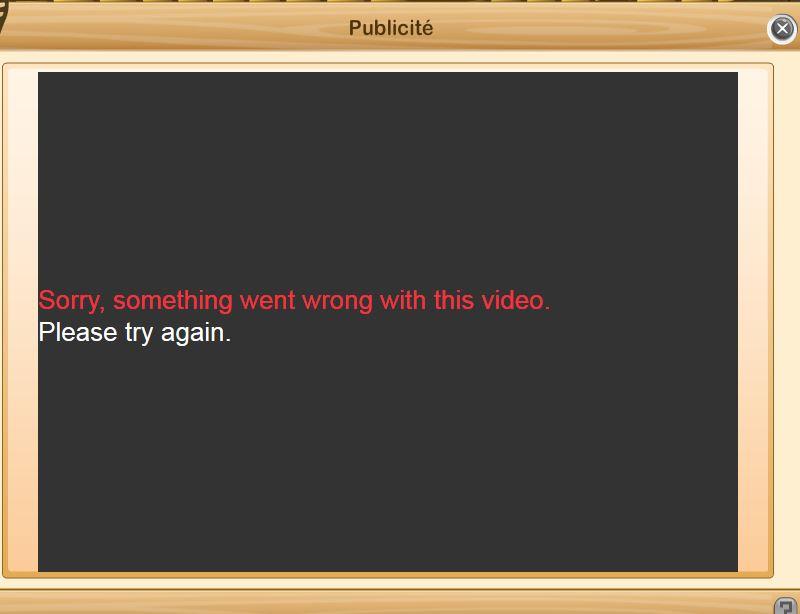 Gros problème avec les vidéos elle reste bloquer avec comme message désolé, quelque chose se passait mal avec cette vidéo. Veuillez réessayer. On ai obliger d'actualiser pour revenir au jeu car il n'y à pas de croix pour quitter la vidéo, et ça fais plusieurs jours.
