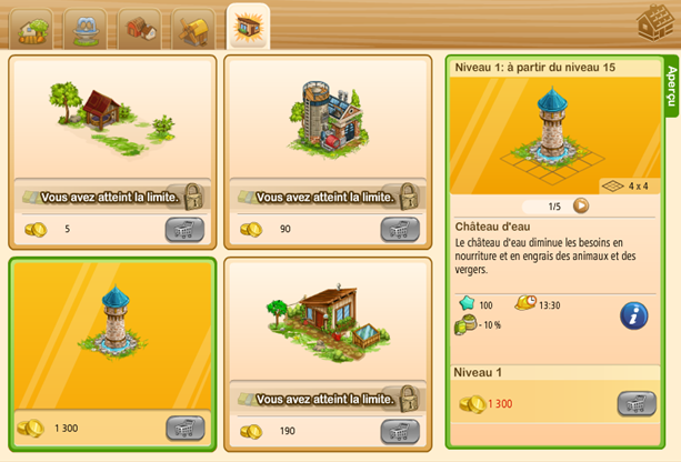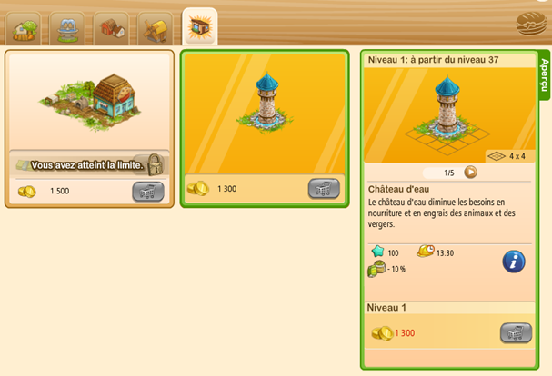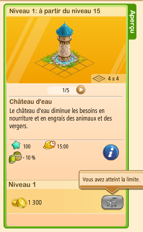 Regarde bien, la cellule d'achat est grise. Et quand tu passes sur le caddie il est marqué " vous avez atteint la limite" Il est donc impossible d'acheter un autre château d'eau
