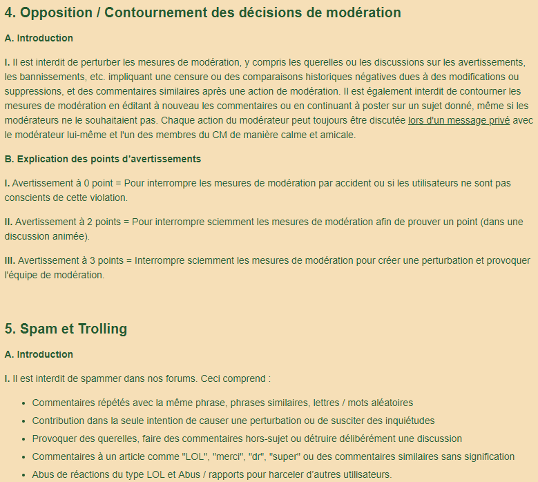 La modération s'emploie à ne faire qu'appliquer le règlement, ni plus ni moins.