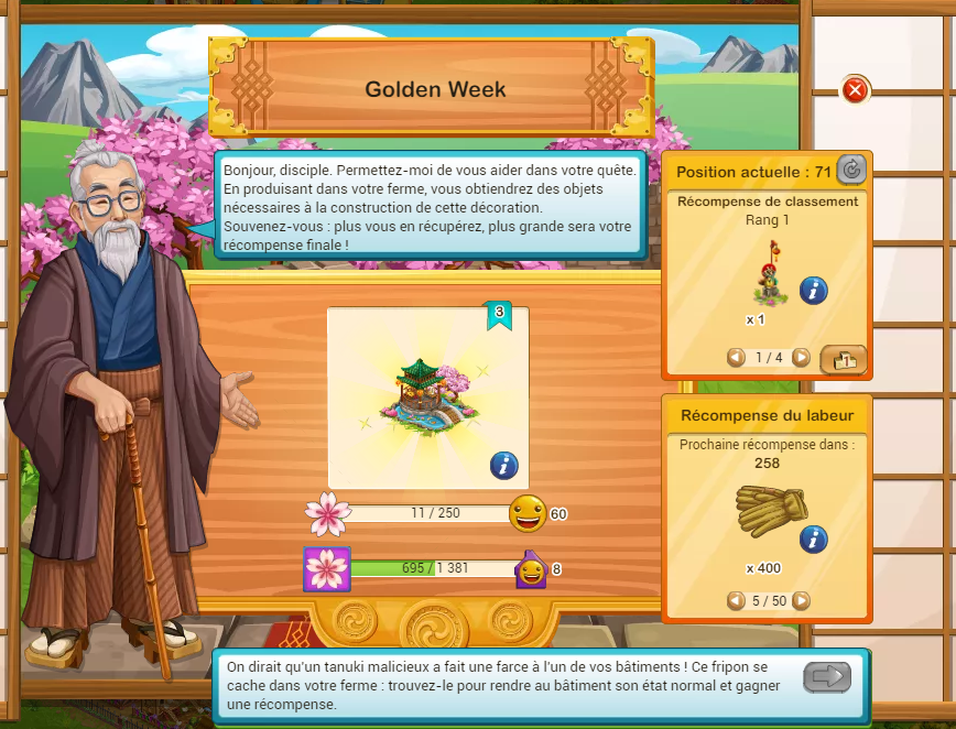 Pour moi, ça ne marche toujours pas et ça n'a pas été bien corrigé. Parce que même si on a trouvé le tanuki, la flèche reste verte et franchement, ça ne va pas rester comme ça pendant 10 jours.