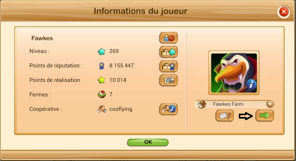 Pour aller sur les fermes des autres joueurs, tu cliques sur le pseudo et en bas à droite, tu as une flèche qui te permettra d'y aller et tu as un déroulé sous l'avatar qui te permet de choisir dans quelle ferme tu veux aller.