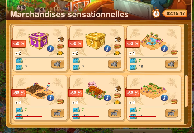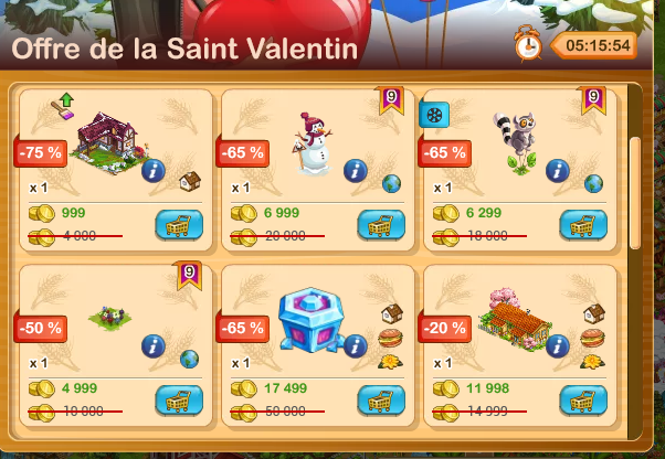 Les 100 mêmes jetons sont vendus pour 5 billets, soit (1 billet rapporte 2 000 or) 10 000 or, mais la promo est plus importante.