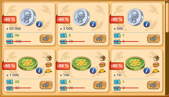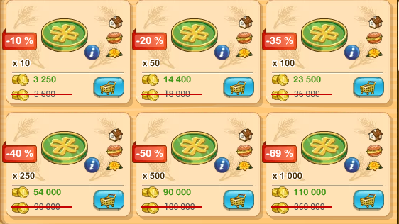 L'offre à 35% (100 jetons), devrait être de 23 400 et non 23 500 (je n'ai pas vérifié les autres), parce que je m'intéressais surtout à la conversion or <--> billets bleus
