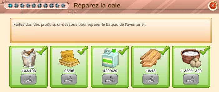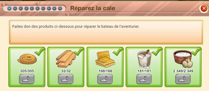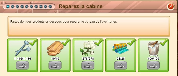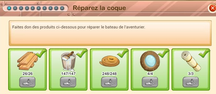 Cette discussion est pour collecter les produits réclamés pour chaque niveau du bateau de l'aventurier (Yarnacle),. Je n'ai pas trouvé dans les archives... Si ça existe, merci de mettre dehors.