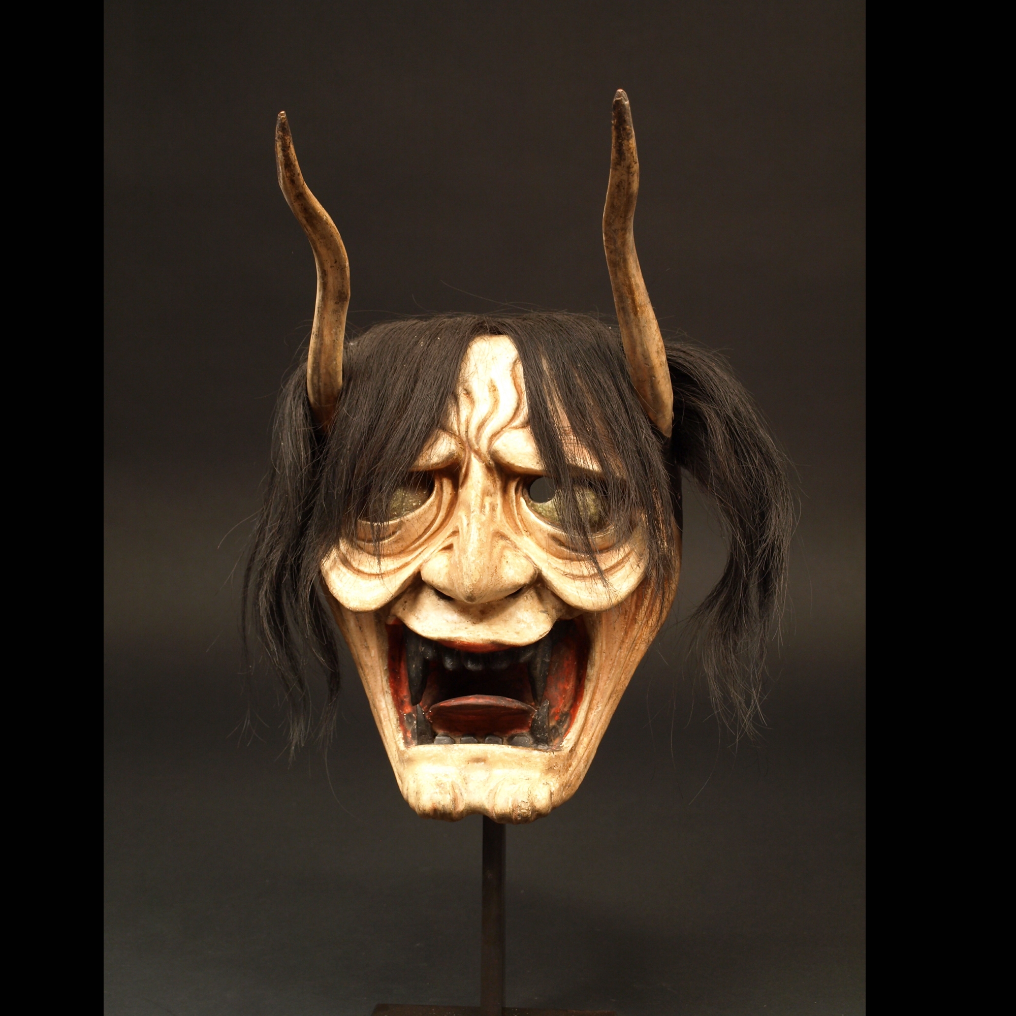 Les masques ont toujours joué un rôle prédominant dans la culture Japonaise. Employés depuis l'époque Jômon, ils se sont répandus dans l'ensemble des fêtes populaires Shintô à l'époque Kamakura. C'est probablement dans ces traditions qu'il faut trouver les origines des masques du Théâtre Noh de l'époque Muromachi.