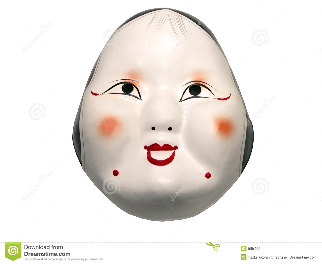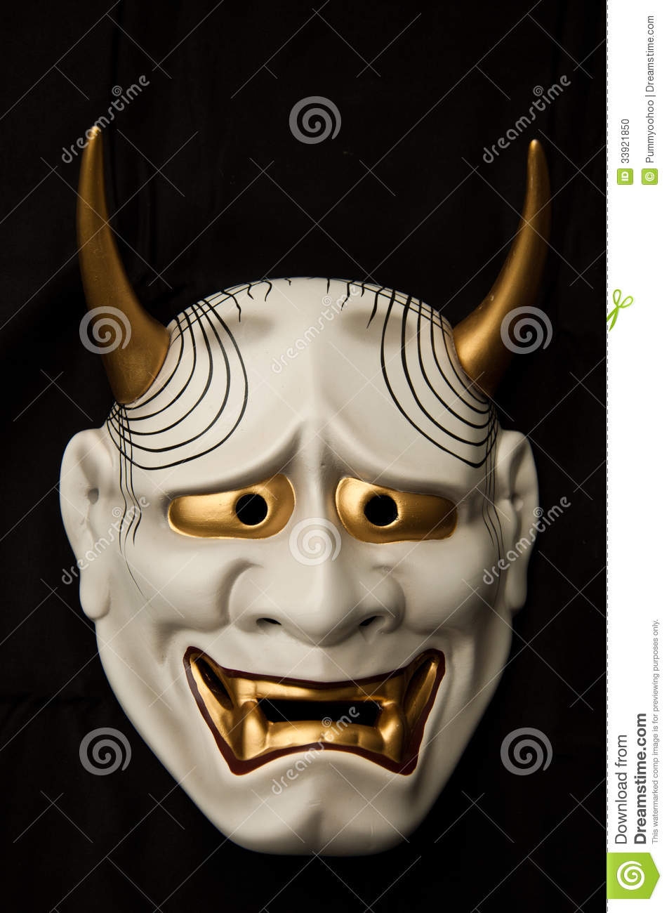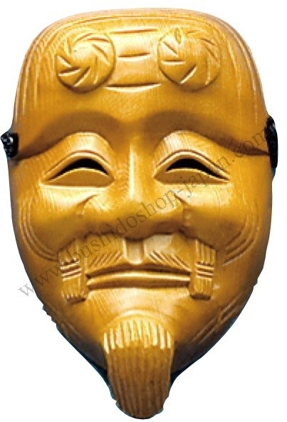 Haut de 20 cm environ, les masques de Nô sont sculptés dans un bois de cyprès, puis enduit d'une couche de peinture blanche sur laquelle sera appliquée la couleur jaune caractéristique de ces masques. De l'encre noire est utilisée ensuite pour les sourcils et les cheveux. L'ensemble est ensuite recouvert d'une couche de laque très finement appliquée. Les yeux sont d'étroites ouvertures, rendant difficile la vision de l'acteur.