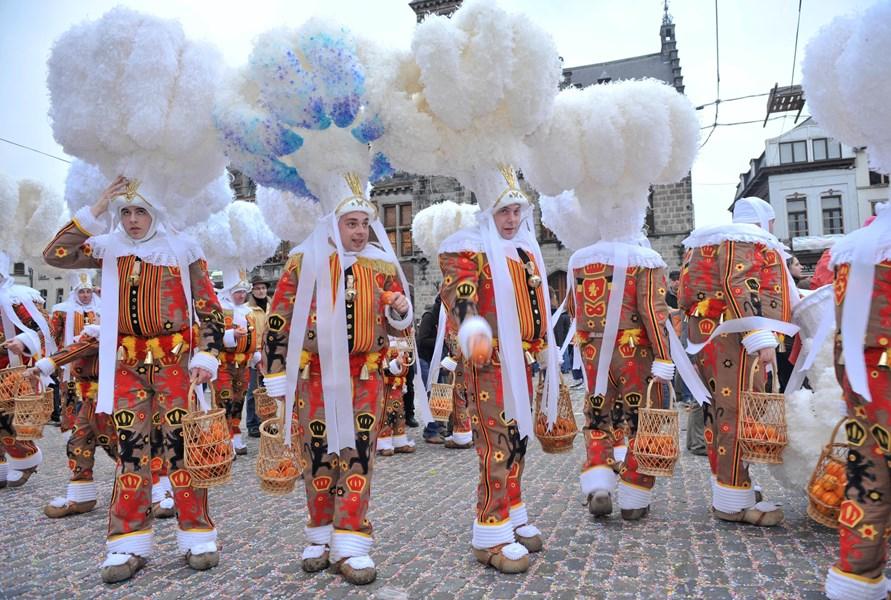 Les Gilles sont les prêtres du carnaval de Binche. Ils ne doivent pas être reconnus. Ils portent un masque de toile recouverte de cire, une paire de lunettes, une moustache et une mouche à la Napoléon III. Ils le gardent jusqu’à midi et quand ils sont reçus par le maire, ils le retirent et distribuent des oranges.