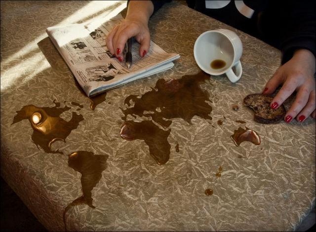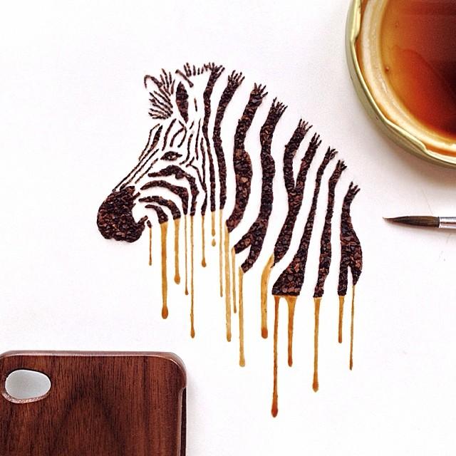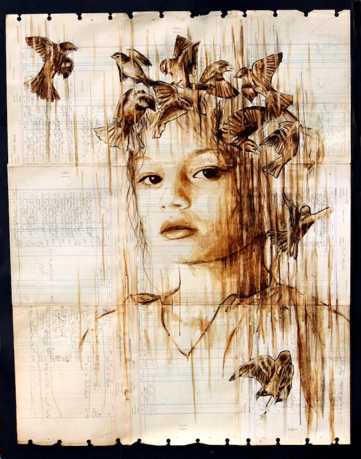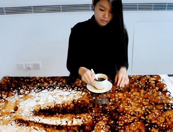 Tu as trouvé de belles œuvres avec peinture au café. J'adore... Ce sont de sacrés artistes. J'espère ne pas faire un doublon avec cet artiste Indonésien (Ghidaq al-Nizar) qui garde son café et son marc du matin pour peindre sur feuilles d'arbre.