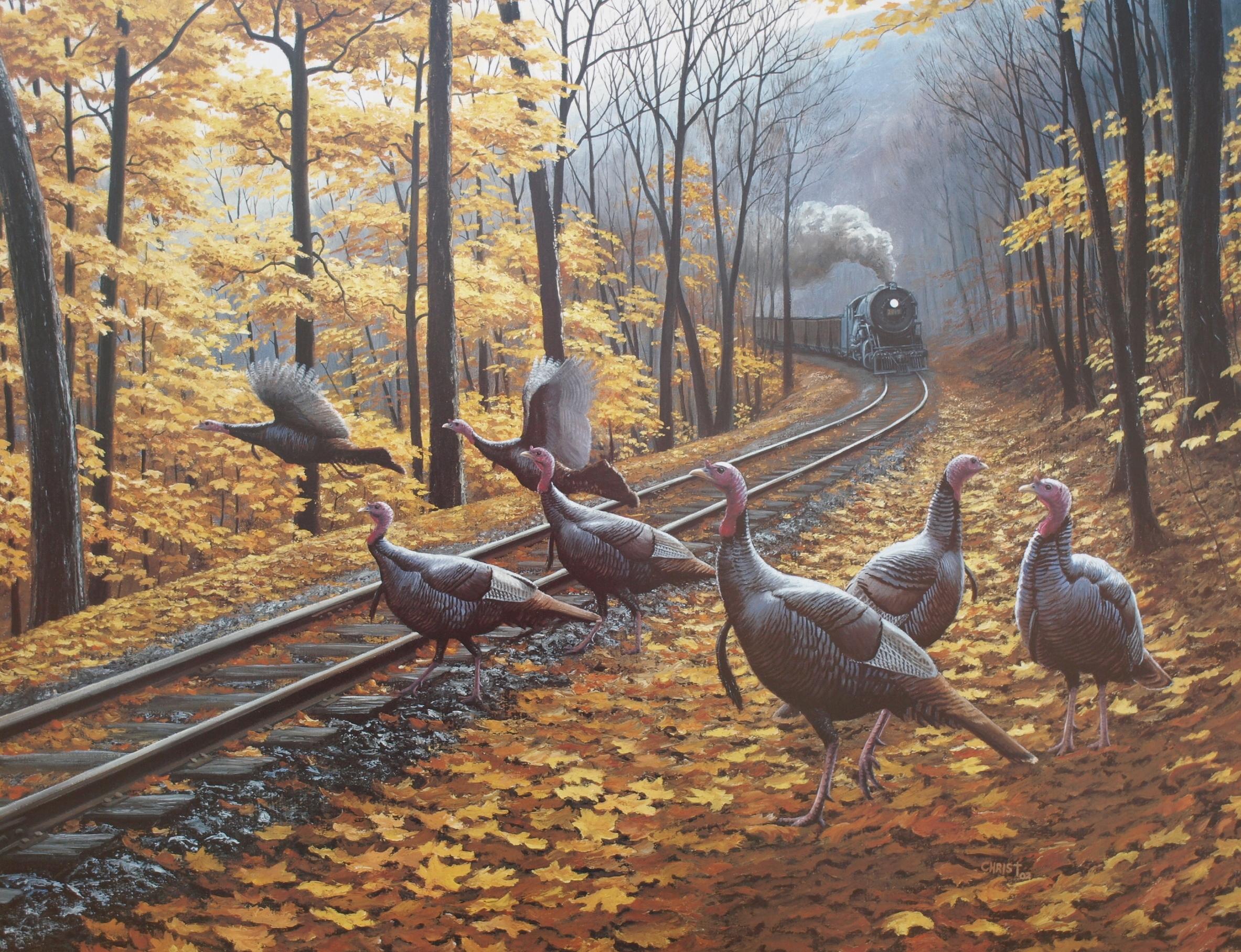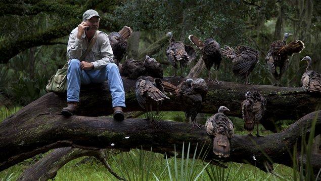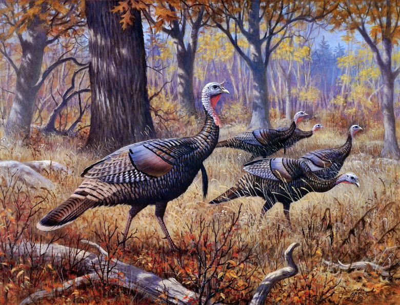 tres tres rare je partage image si perso... mais comme c le theme... par chez moi, ya de vrai de vrai dindes sauvages qui viennent manger dans les mageoirs a moineaux avec les chevreils (cerfs)