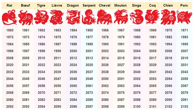 Dans l'horoscope Chinois , il y a 12 signes représentés par 12 animaux.