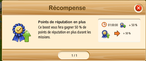 " Points de réputation en plus. Ce boost vous fera gagner 50% de points de réputation en plus durant les missions "