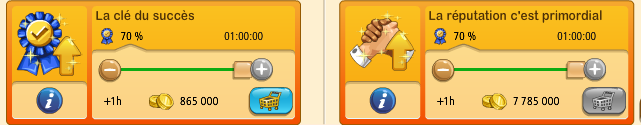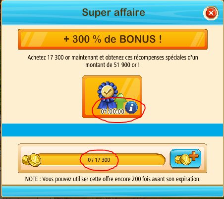 Info qui va donner de l'urticaire a tout le monde ))) Titclarinette je compatis d'avance pour toi car petite précision supplémentaire. Les 300% ! comme si bien écrit ne sont en fait que la réduction que fait GGS sur la super affaire. Petit cours de math^^ : divisez 51900 par 3 = 17300 donc 300% de réduc ) Le vrai cout en points bonus est en fait de 50 %. En effet, en cliquant sur le petit " i " comme l'a souligné Eurêka. Une fenêtre apparait et te dit ceci : " Points de réputation en plus. Ce boost vous fera gagner 50% de points de réputation en plus durant les missions " Donc attention tout le monde ne vous fier surtout pas au 300% indiqué en entête. C'est un trompe l'oeil que je trouve assez vulgaire au passage. Car le total est bien de 50% pendant une heure. GGS devient vendeur de rêve avec ce défi ) Encore une fois merci pour toute ces économies )