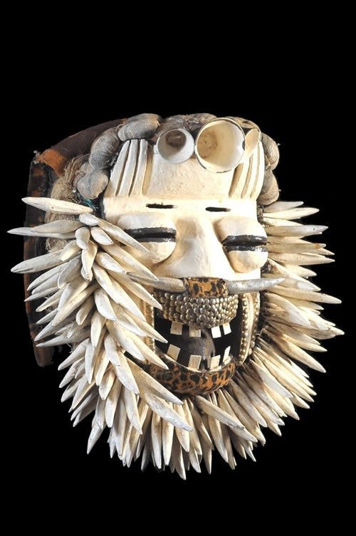 Masque un est connu comme le masque de Teke il est originaire des Républiques du Congo et du Gabon. Il est utilisé par une société secrète appelée Kiduma. Il est utilisé dans les célébrations sociales et les rituels. Le masque est maintenu par les dents de l'utilisateur.