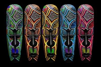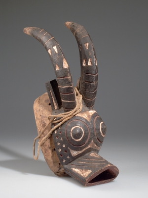 Masque deux est connu comme masque Sénoufo, il est utilisé dans les pays d'Afrique occidentale comme la côte d'ivoire, Ghana, Burkina, Faso et le sud du Mali. Il est utilisé dans les rites dans une organisation masculine qui éduque les jeunes hommes dans les traditions et les devoirs de devenir un homme. Ceci est connu comme la société Poro. Le masque a été créé par des artistes spéciaux. Qui ont un statut élevé dans la société la croyance est que les masques ont le pouvoir de communication entre leurs ancêtres. Y compris leurs défunts. Le masque sénoufo ont tendance à combiner les caractéristiques des animaux et des humains. Ce masque est utilisé par plus de 1.000.000 personnes en Afrique de l'Ouest.
