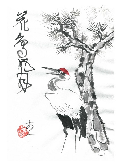 Le maître crée l’harmonie et la beauté par le pinceau trempé à l’encre de Chine qu’il couche sur le papier blanc.